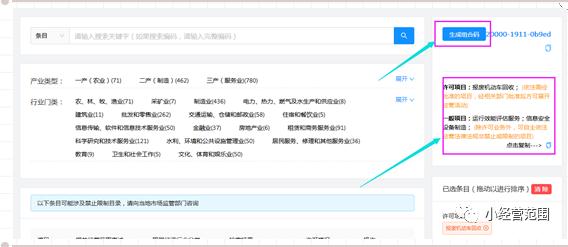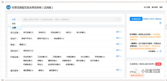 申請人可通過復(fù)制組合碼獲取經(jīng)營范圍規(guī)范化表述。
